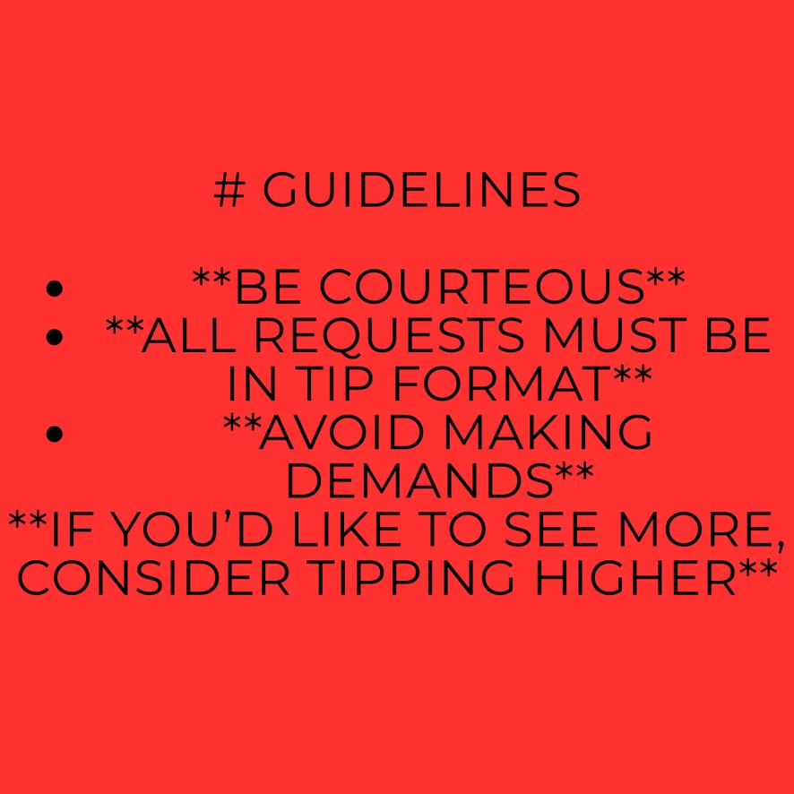 Τσιμπούκι, Χορός twerk, Γαμήσι στα βυζιά, Γυμνόστηθα, Δονητής, Βρωμόλογα, Στα Τέσσερα, Δάχτυλο, Οδηγίες αυνανισμού, Spanking, Σόου με λάδι, Βαθύ λαρύγγι, Flashing, Αυνανισμός, Ποδολαγνεία, Τακούνια, Πρωκτικό, Πρωκτικά παιχνίδια, Gagging